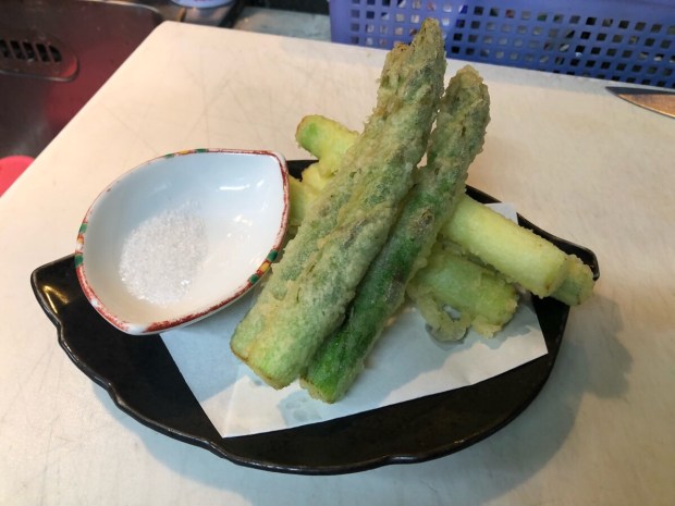 極太のアスパラの天ぷらもー。