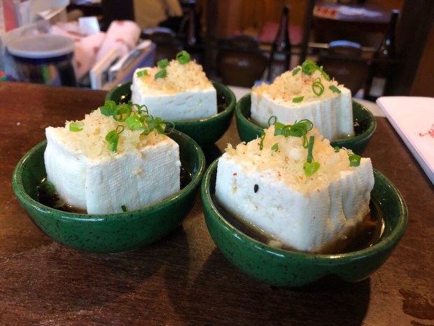 本日暑かったので、お通しは こだわり豆腐を使用しました、たぬきヤッコでした(о´∀`о)