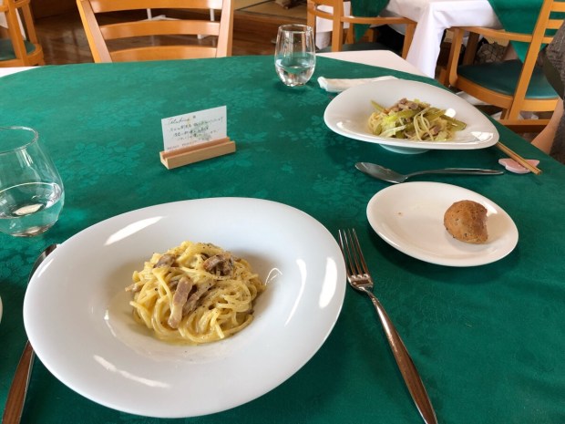 瞬ぴぃは カルボナーラ、ひとちゃんは オイルベースのパスタに( ^ω^ )