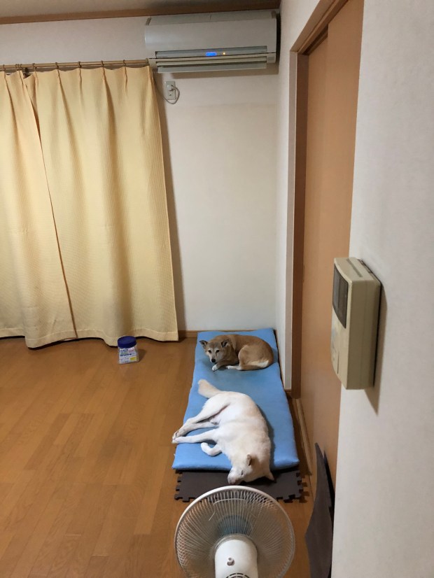 お家に一旦帰りまして、午後の お散歩へ出ましたが、思っていたより ちょいと気温が高めでございましたので、リビングをエアコン部屋に\(^o^)/