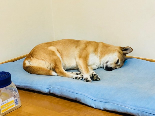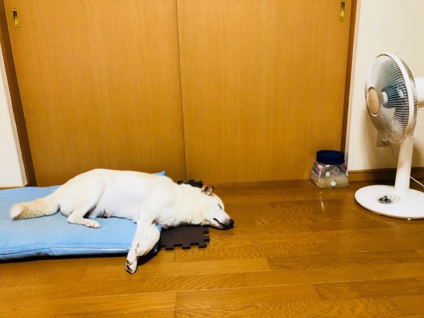 扇風機に当たりまして、頭を落として 二日酔いみたいな状態で 爆睡の お殿様(*≧∀≦*)