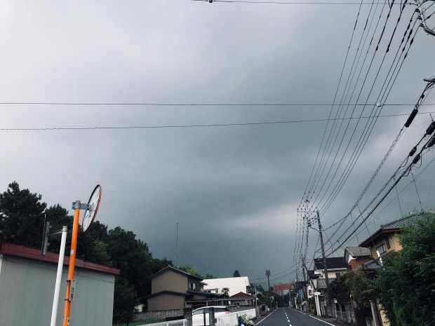 東の空が真っ暗になりまして、風も出てきましたので、こりゃ 流石に来るなーな感じ。
