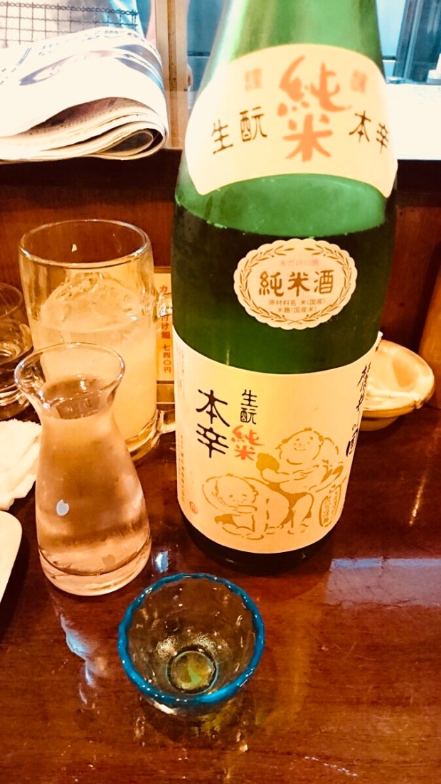 土曜日の出現率が 高めの フナポンさんも 御来店下さいまして、ビールからの 日本酒、山形県 ふもとい 生酛純米 本辛とー。