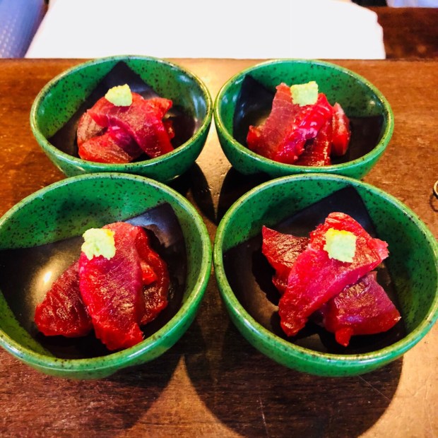 お通しは、贅沢シリーズにしまして、天然生インド鮪のブツでございましたo(≧▽≦)o