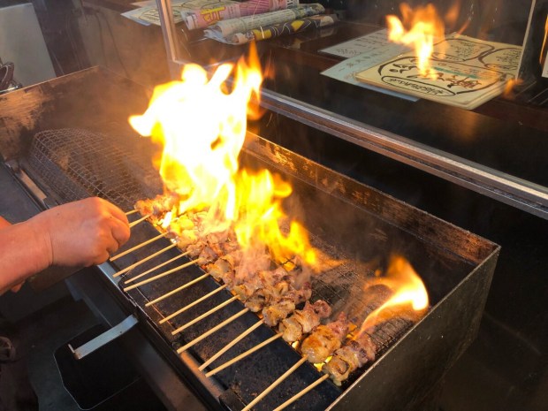 今週も 良い炎が 上がりました、炭火焼きとり(((o(*゚▽゚*)o)))
