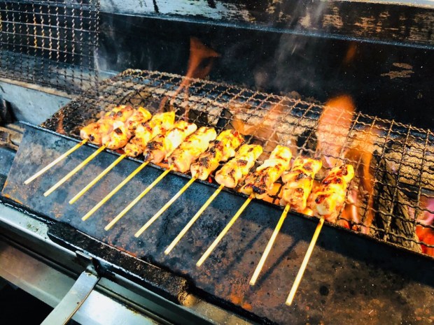 炭火で焼きます 焼き鳥は、一味も二味も違いますからね〜(☝︎ ՞ਊ ՞)☝︎