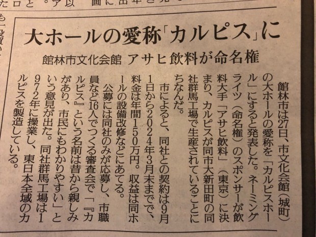 文化会館の大ホールの命名権がアサヒ飲料に❗️