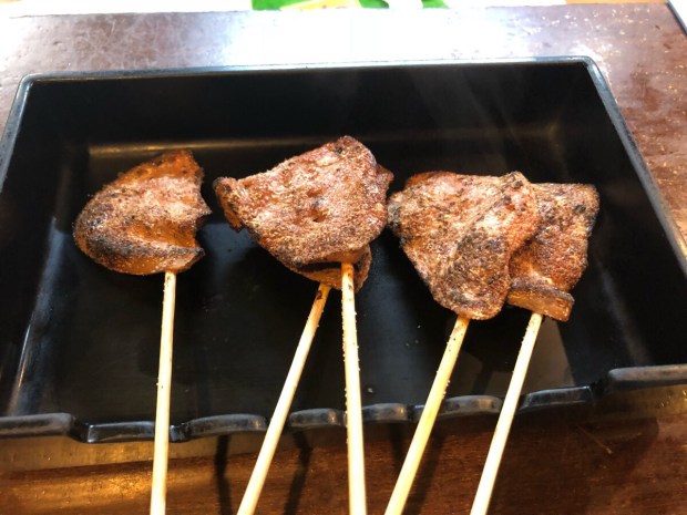 普通は タレ焼きで お出ししております、アカ(レバ)ですが、瞬ぴぃ的には 塩焼きも 隠れオススメだったりしますので、オーダーの時に『アカを塩で』とカッコ良く お伝え下さい(๑˃̵ᴗ˂̵)