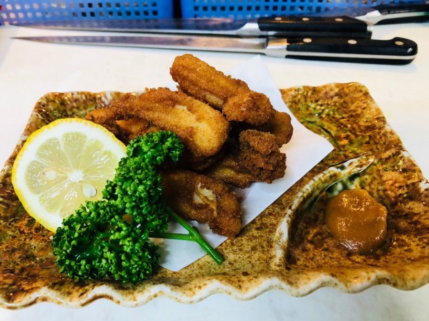 お久しぶりに 豚の【のどがしら】を刺しましてヽ(^o^)