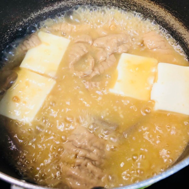 人気者の 瞬ぴぃ特製 豚の大トロもつ煮をコトコト♪( ´▽`)