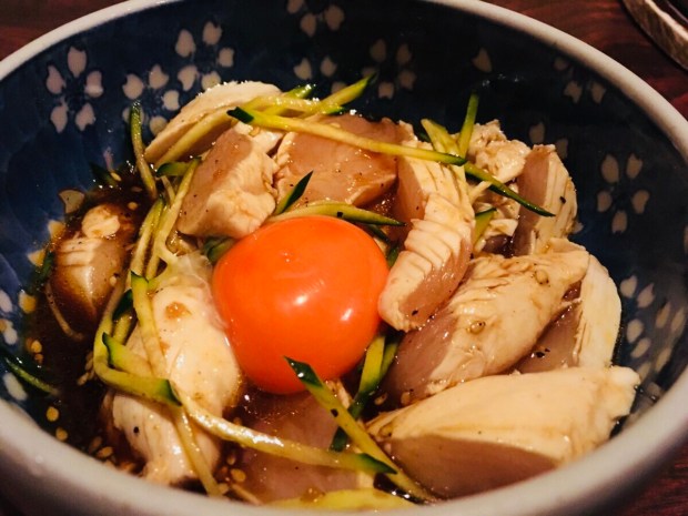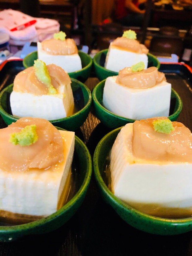 お通しは、ホタテのづけを乗せまして、その漬け汁をかけました 変わり奴でございました(^O^)/