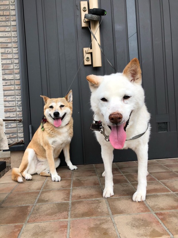 お二人さんも お散歩から帰ってくれば、ハァハァと暑そうでした( ´Д`)y