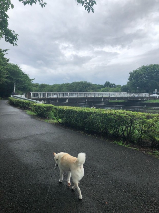 こりゃ 散歩は、雨が落ち着いてからにしようかな〜なんて思っていたんですが、うちの お殿様は 元野犬でして、環境的に慣れっ子なのか、こんな中でも 行く気満々(;´д`)