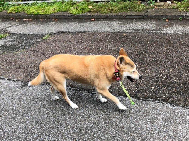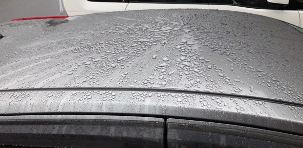 朝起きて、お散歩へ行く時に 車は しっかり濡れており。。。