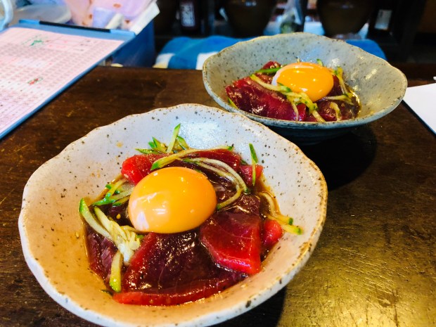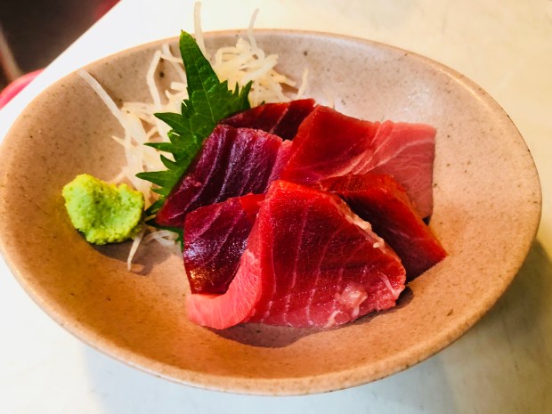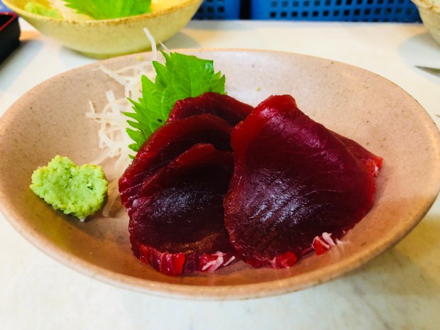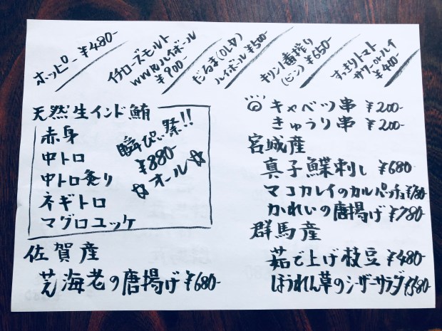 真子鰈が終わってしまいましたので、後半戦の お通しは、インド鮪の赤身に変更(^◇^;)