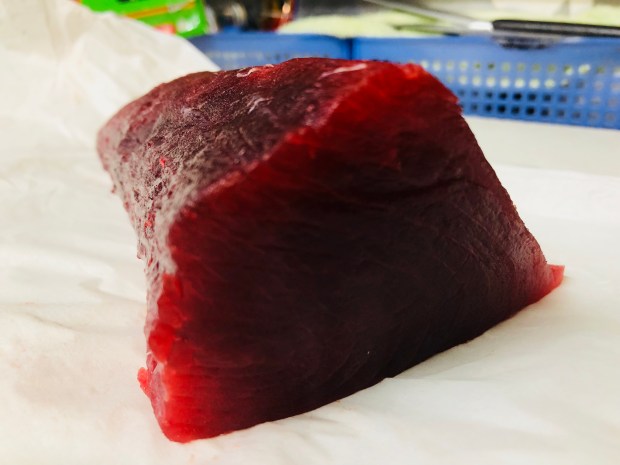 土曜日という事で、豊洲市場の 仲買いさんからの連絡を受け、買い付けました、ニュージランド産 天然インドマグロ(^O^)/