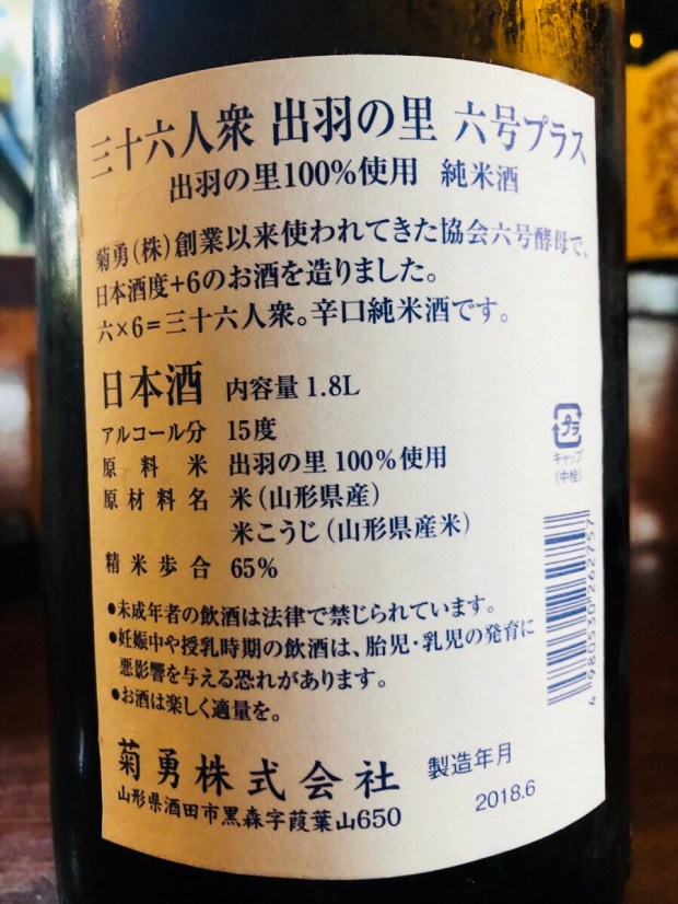 山形県 三十六人衆 出羽の里 六号プラス 辛口純米酒となります。