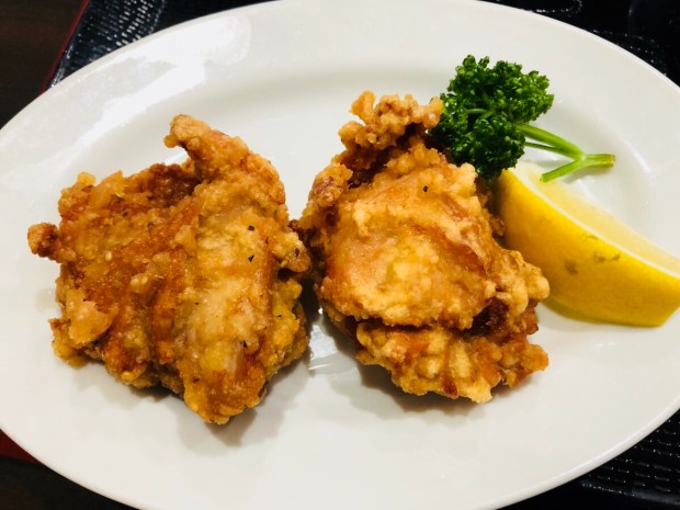 こちらも人気の 若鶏の骨付きモモ肉の唐揚げ。