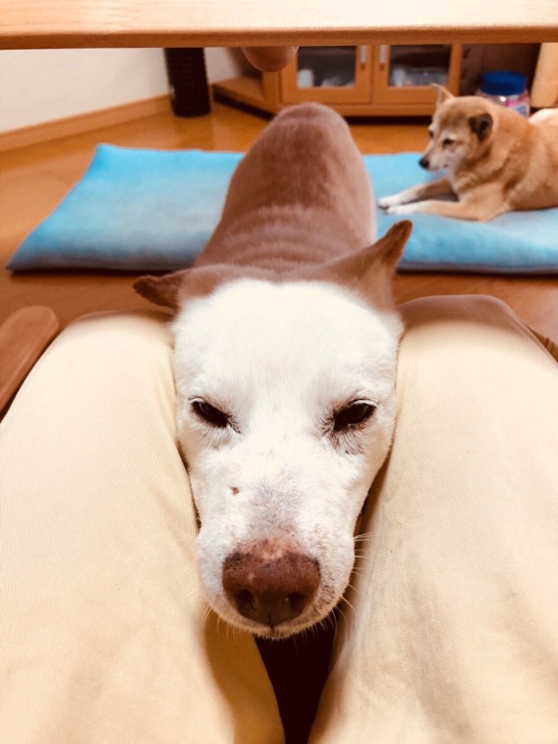 ソファーに座りますと、お殿様が お散歩へ行こうよー❗️と突っ込んできまして(≧∀≦)