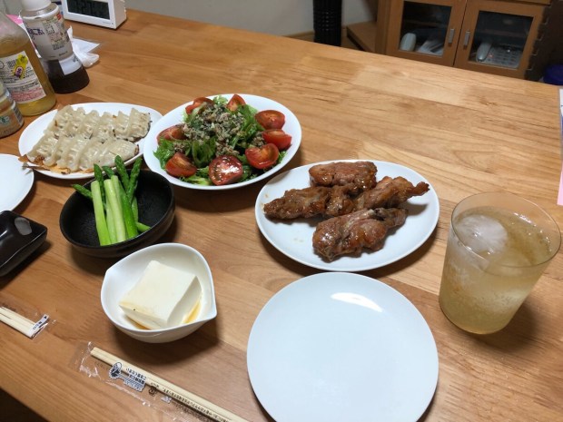 お野菜とタンパク質をバランス良く摂取しながら、結局 お酒を飲むとという流れ(爆笑)