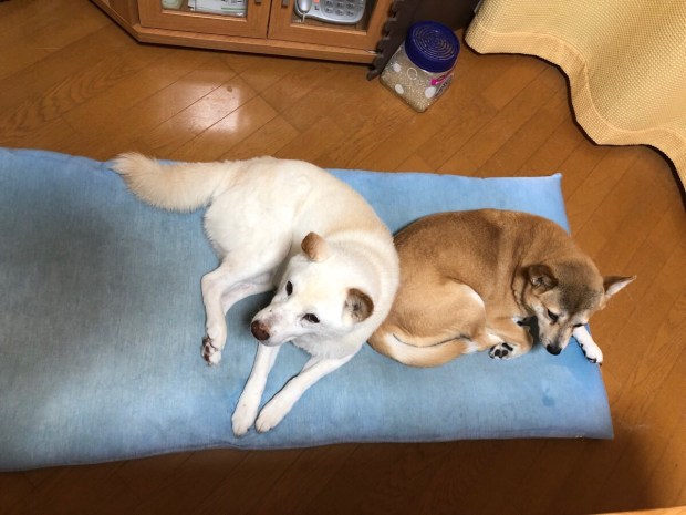 暑くなる予報でしたので、2人の生活スペースのリビングは、エアコン部屋に٩( ᐛ )و