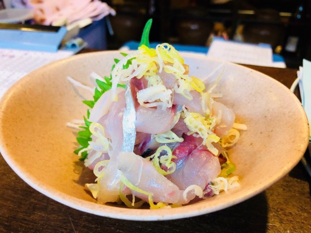 オススメメニューの 釣り鰺のタタキ。
