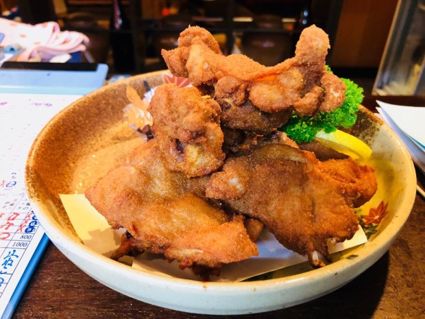 若鶏の骨付きモモ肉の唐揚げ。