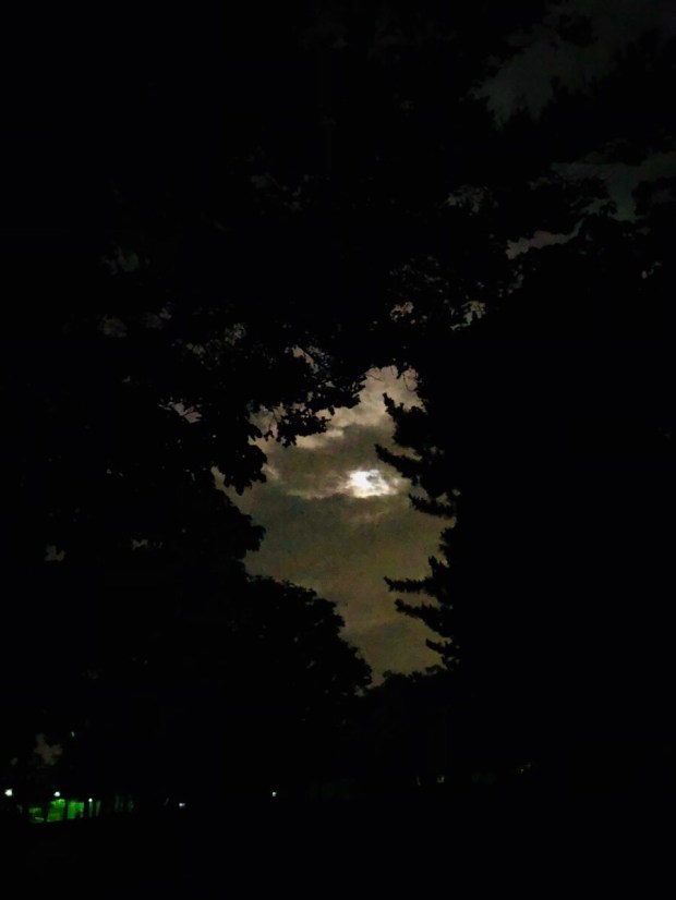 そんなこんなで、無事に 業務終了しまして、夜の散歩時には 超薄っすらと お月様(^◇^;)