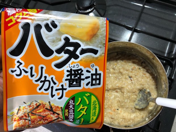 週の最終日、土曜日の朝御飯は バター醤油ふりかけでスタート(^^)