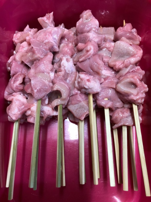 お店の仕込みは、なかなか入荷してくれませんでした、豚の【のどがしら】が再入荷しましたので、串うち(^o^)/