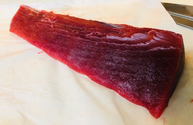 朝イチ、豊洲市場の仲買いさんより TELを頂きまして、買い付けました ニュージーランド産 天然インドマグロ‼️