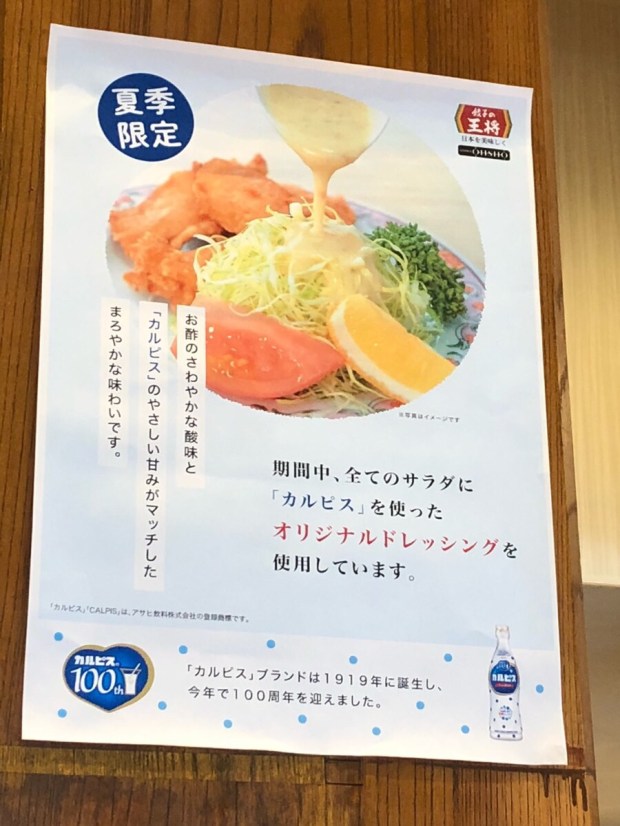 地元 カルピスを使用しました、ドレッシングを使っているとの事ですが、餃子定食には サラダが付いておらず。。。