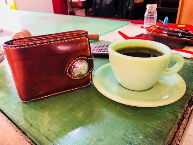 コーヒー飲みつつ、先にいました スーパーチャリのアタ塾長も一緒に トーキング(^O^)