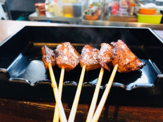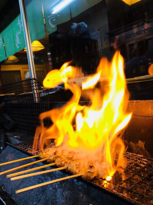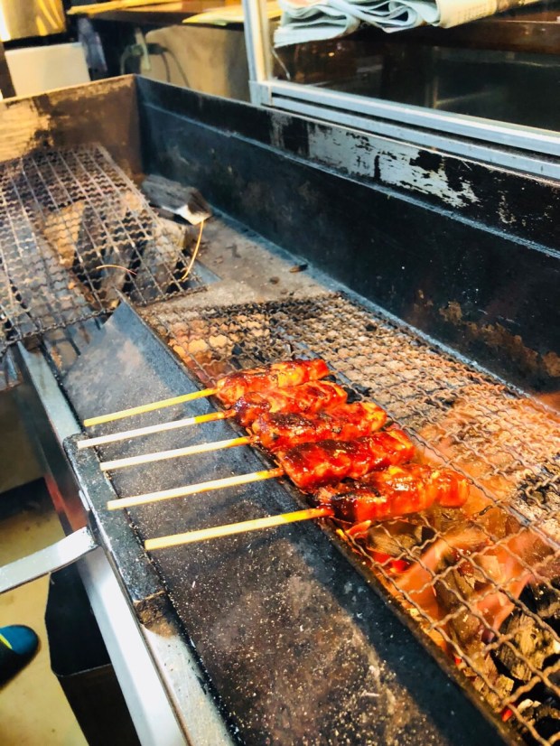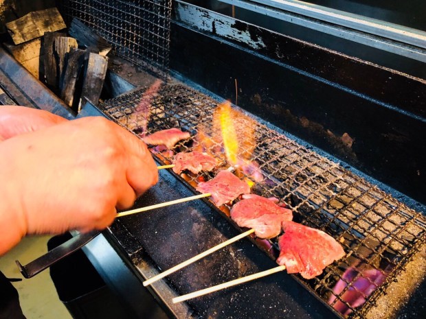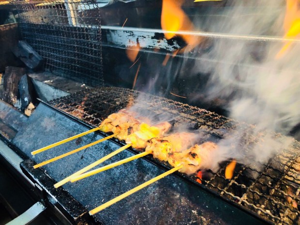 炭火の焼き鳥も 炎を上げまして、焼き焼き‼️
