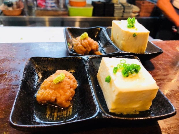 昨晩の お通しは、こだわり豆腐のヤッコと鱧の佃煮風でございました♪( ´θ`)ノ