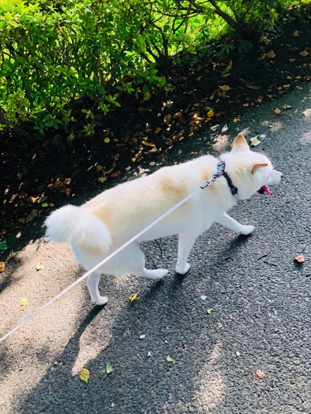 朝から 午後のシッコに使っております、日陰ロードを散歩コースとして 使いましたf^_^;