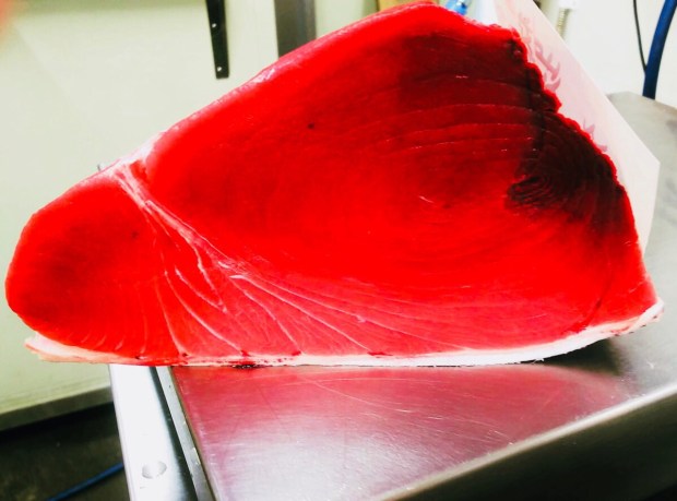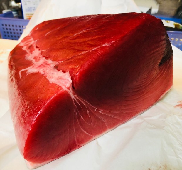 朝買い付けました、アメリカ合衆国 ボストン産の 天然本鮪(生本マ) 3kgが 御到着(☝︎ ՞ਊ ՞)☝︎
