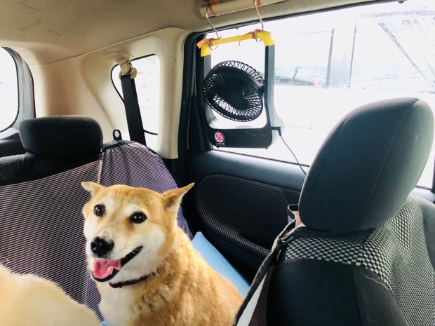 今回の秘密兵器の扇風機を回して♪( ´▽`)