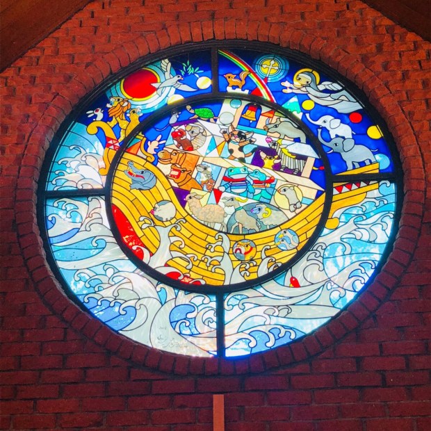美術館に 辿り着く前に、ステンドグラスの教会が ありまして(^^)