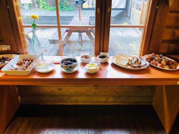 テラスで 朝食を…と思っていたんですが、ちょっと遅くなってしまいましたので、ランチタイムまでの時間が短くなってしまいましたので、買ったパンを1つずつにしました(o^^o)