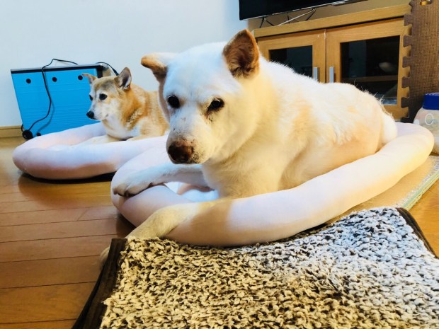 帰宅しますと、2人とも ニューお布団を上手に使っておりました(๑>◡<๑)