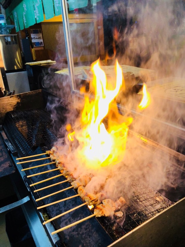 炭火の焼き鳥も 炎を上げましてー╰(*´︶`*)╯