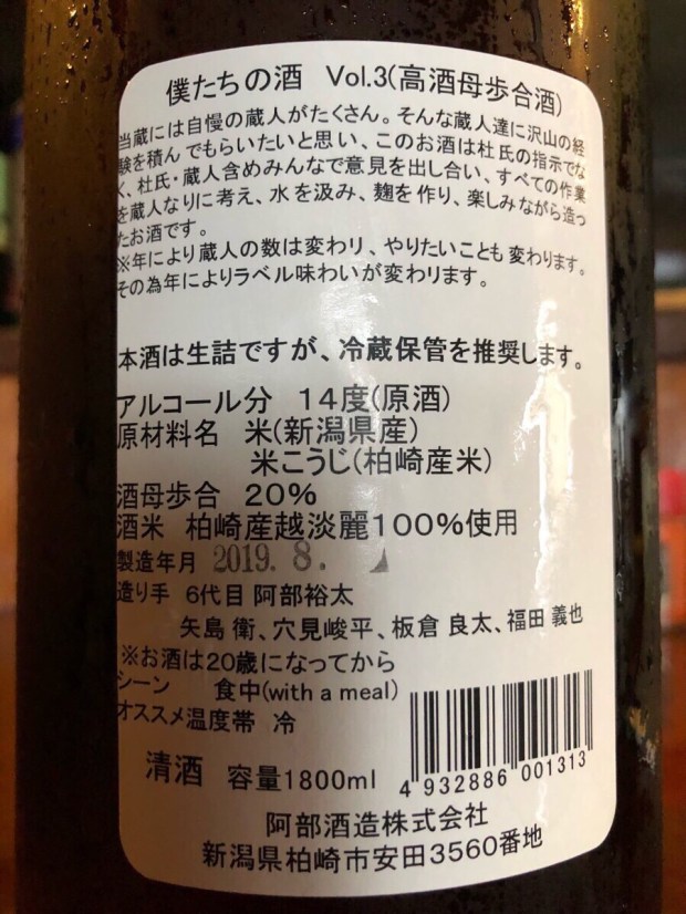 新潟県 あべ 僕たちの酒 VOL.3 柏崎産越淡麗100%使用