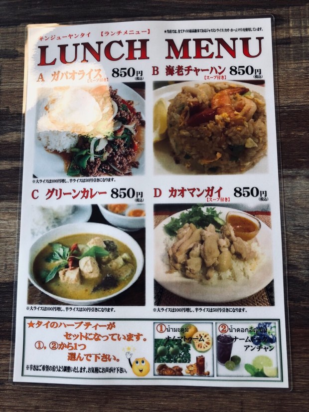 今日のランチは、レッドカレーを食べようと、移転しました 【キンジューヤンタイ】さんへ行きましたが、ランチメニューが出来ておりまして。。。
