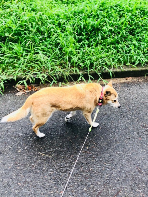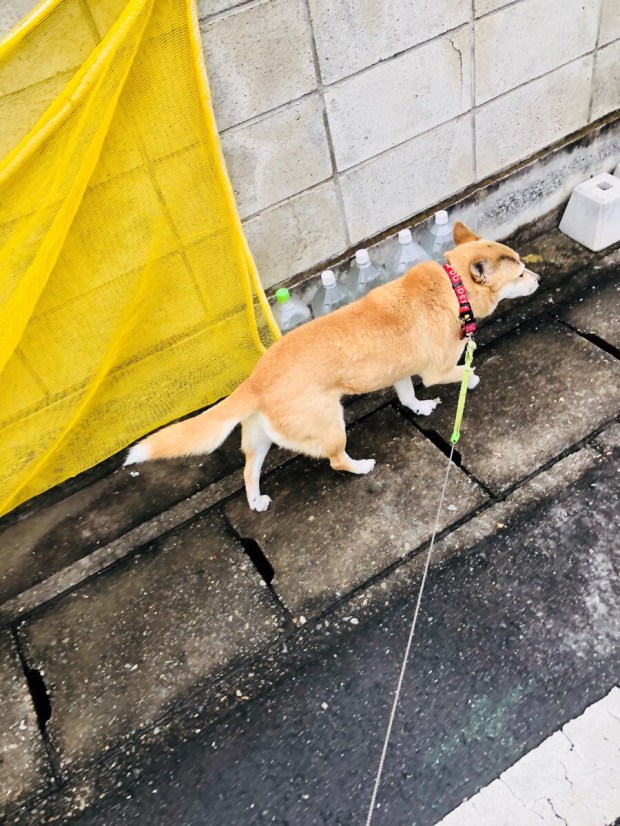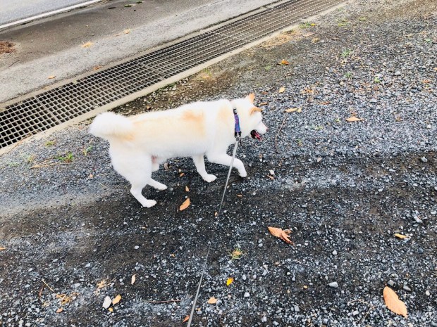 とりあえず、ちょっと歩かせてみましたら、右前足を少し かばっているような…右半身が使いづらそうな…。