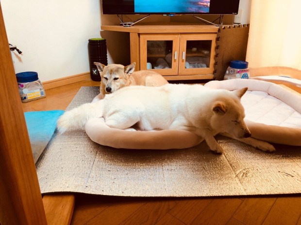 午後の散歩へ 帰りまして、お殿様 気付かずで 爆睡しておりましたので、ヒバ子さんを先にU^ェ^U
