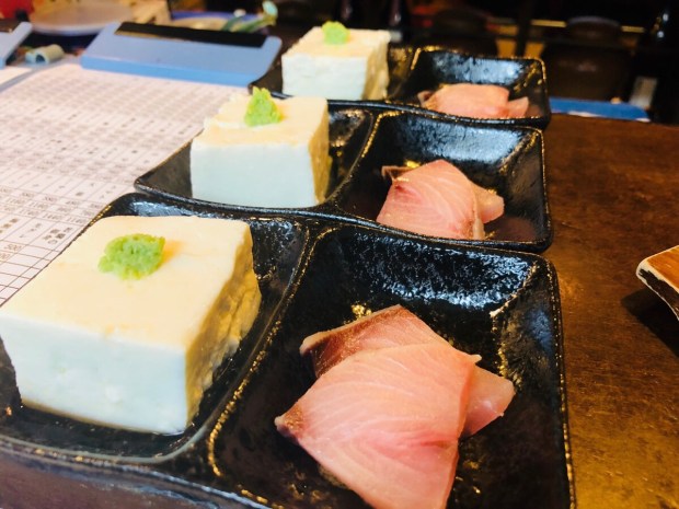 本日も 天然鰤の生ハム付きと、出来立て豆腐の お通し╰(*´︶`*)╯