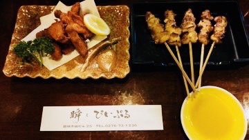 体に良いように、サラダを食べてからの〜、焼き鳥と軟骨唐揚げ(⌒▽⌒)