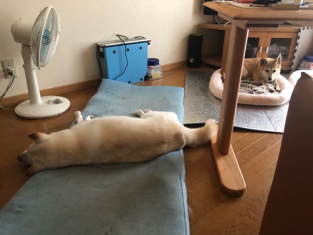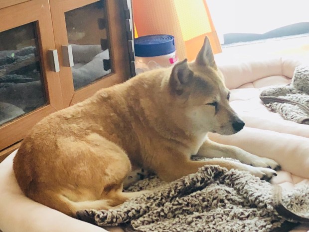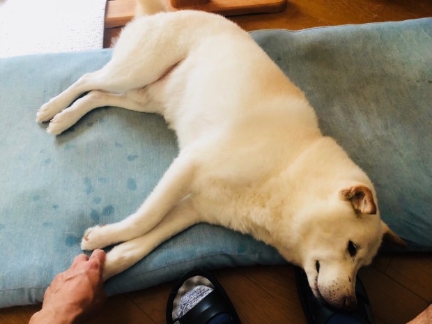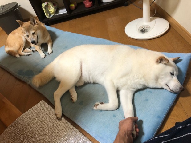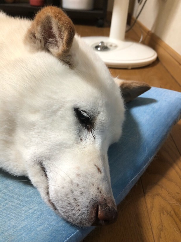 付き添いも 少々疲れる⁈のか、ヒバ子さん お耳ピーンf^_^;