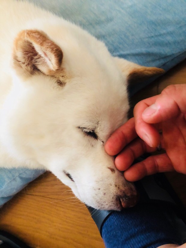 大丈夫だよー、一緒にいるよーと声をかけながら 嫌がられないように 体を撫でまして…。